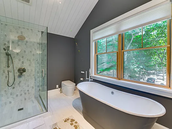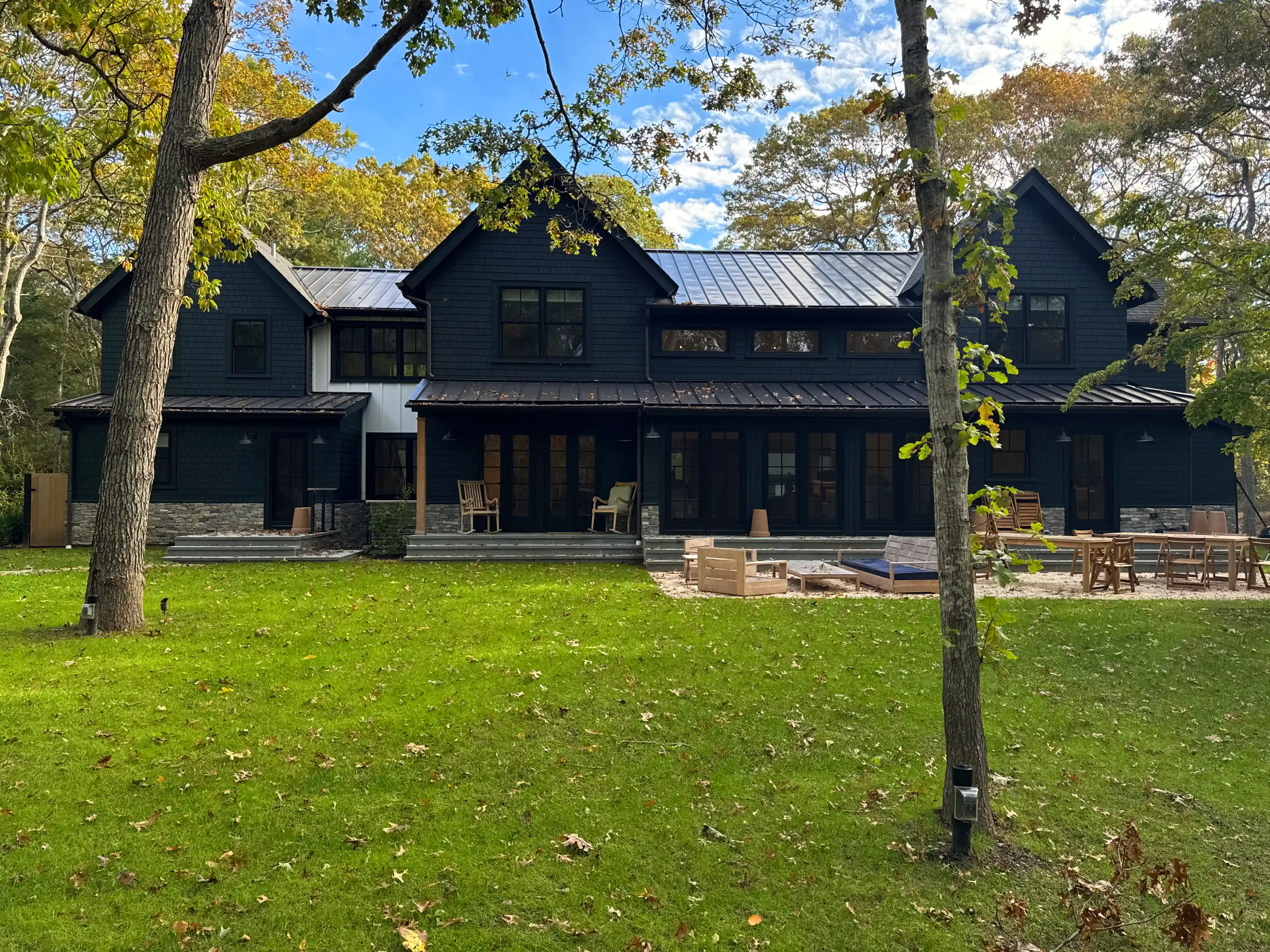 The build begins with precise site preparation and a strong foundation to support the home’s expansive footprint. Framing shapes the bold twin-gabled rooflines and open layout, while structural steel and wood elements ensure strength and character. The exterior is finished with dark siding, natural stone accents, and a standing-seam metal roof for durability and modern appeal. Inside, mechanical systems are installed with care before walls, custom millwork, and rich finishes bring warmth to the contemporary design. Finally, the stone walkways, lush landscaping, and detailed craftsmanship complete a home that feels both grounded in nature and architecturally refined.